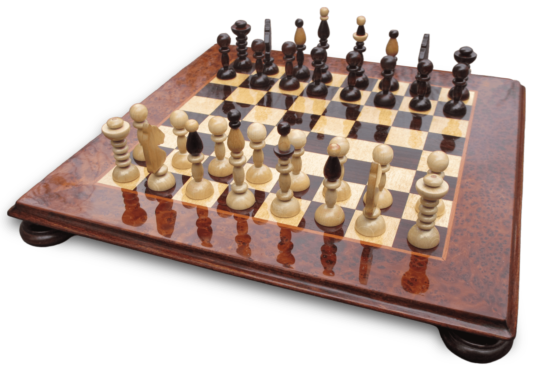 Šachové komplety vytvářím jako originální kusy. Souhra klasických řemeslných postupů s maximálním podílem ruční práce a přizpůsobení tvaru, velikosti a použitých materiálů vaším individuálním přáním je předpokladem kvality výrobků. Vznikne-li na základě těchto přání svébytný návrh, ponese nadále vaše jméno.