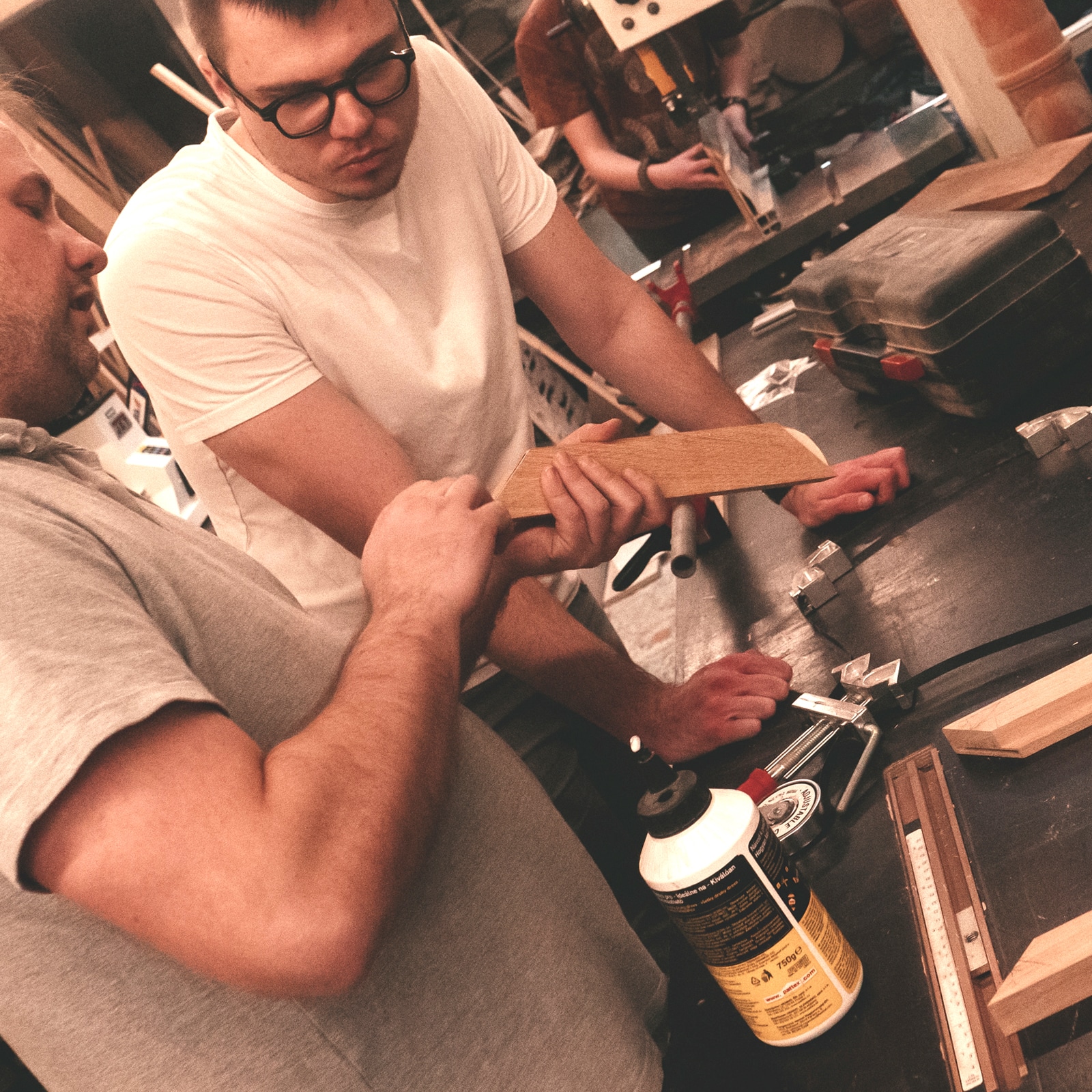 Ukážeme si jednak konstrukce z plošných materiálů, které minimalizují množství spojů. Dále si ukážeme a vyzkoušíme různé verze rohových spojů na čep a rozpor, na rybinu, přeplátování, různé druhy spojů na vložená pera. Tyto spoje jsou dále využitelné při konstrukcích dveří, oken, postelí, blindrámů, rastrů a dalších rámových konstrukcích. Zdokonalíme se v rozměřování a rozkreslování spojů pomocí přípravků, rejsků a úhelníků. Pocvičíme nastavování a obsluhu ručního elektrického nářadí jako je horní frézka, lamelovací frézka, kolíkovací přípravky, ponorná pila, pásová pila, kotoučová pila, stojanová vrtačka... Cílem kurzu je vytvořit ve skupině výrobky s řadu variant rámových spojů a vzájemně se poučit o tricích, fíglech a možnostech jednotlivých rámových konstrukcí.