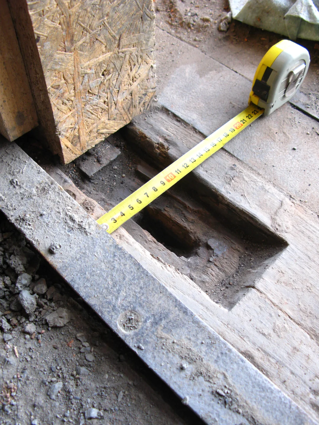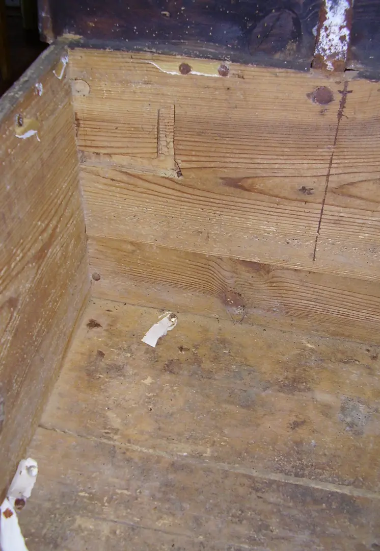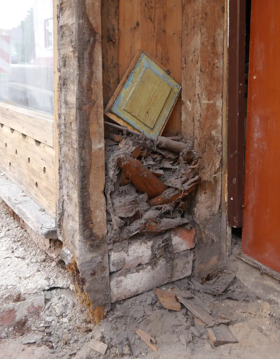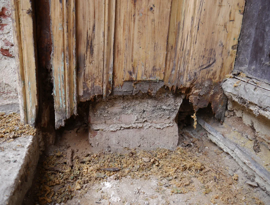 Rozsah hniloby deštění viditelný na zadní straně po demontáži