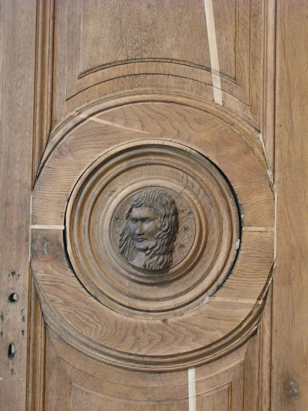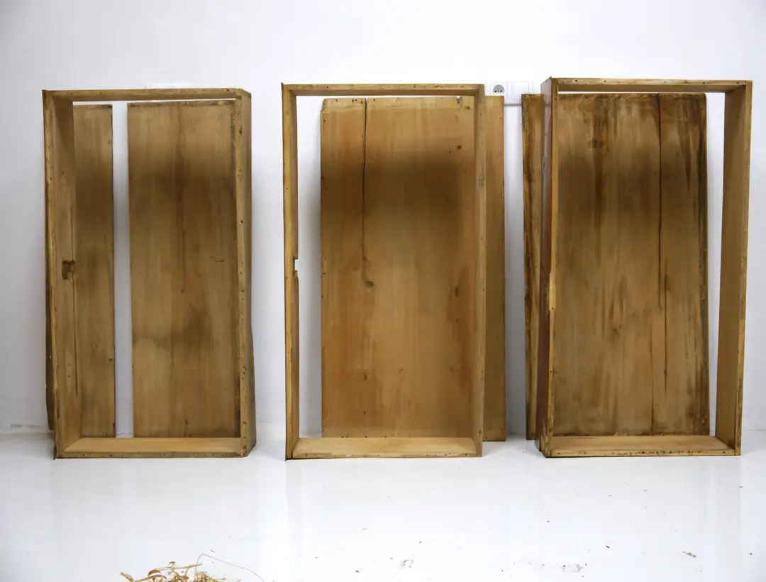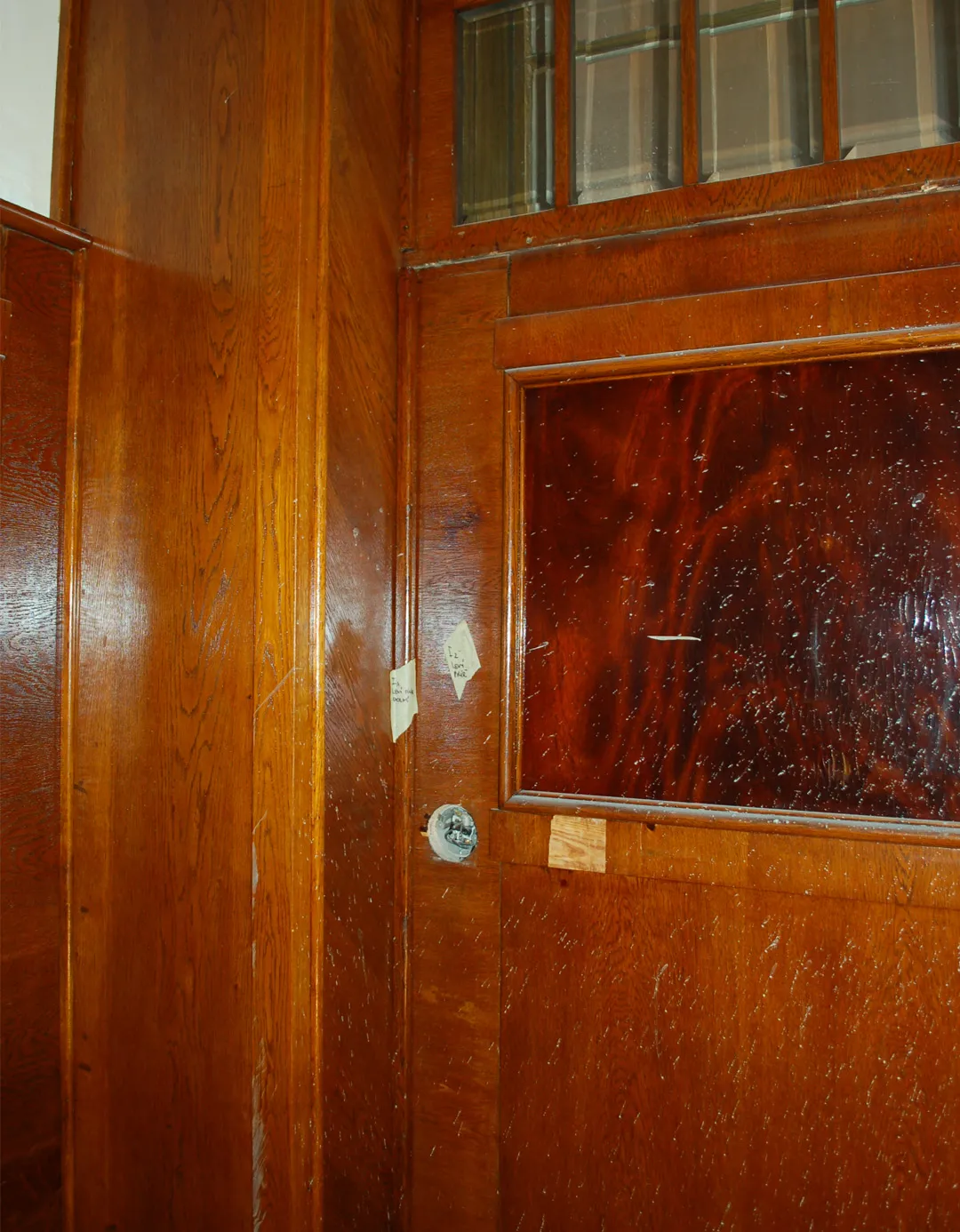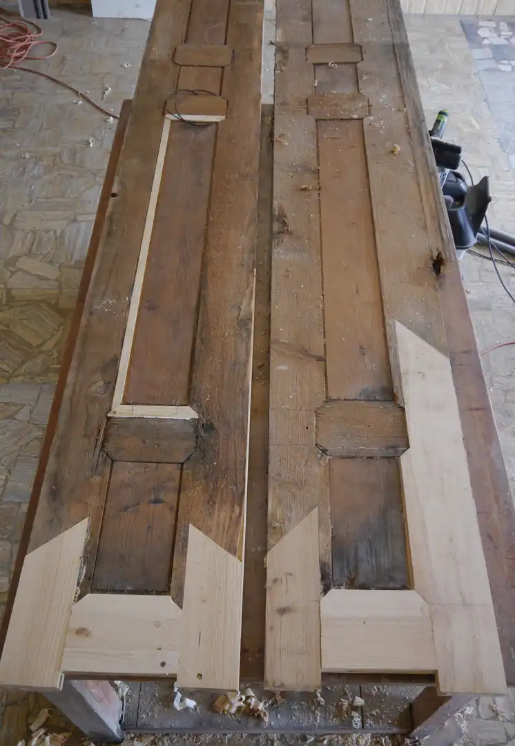 Dveřní křídla po odstranění starých nátěrů a vyjmutí nesoudržných výplní