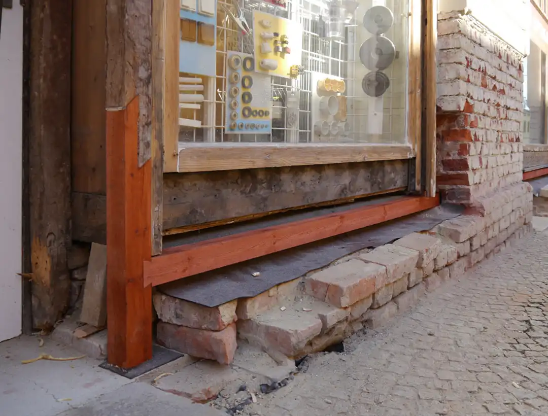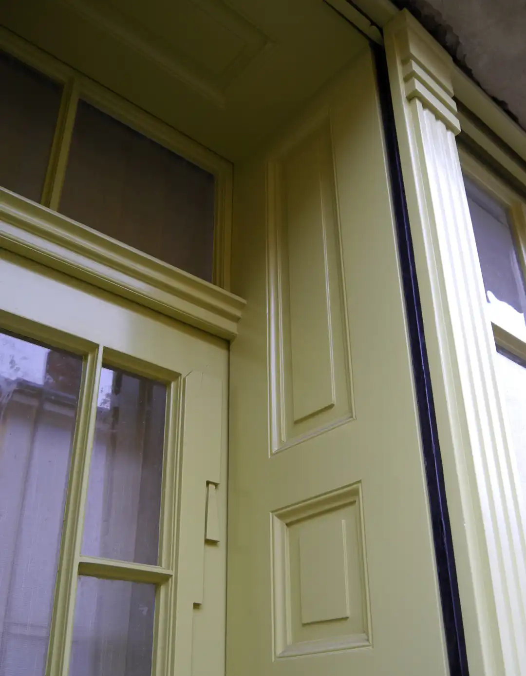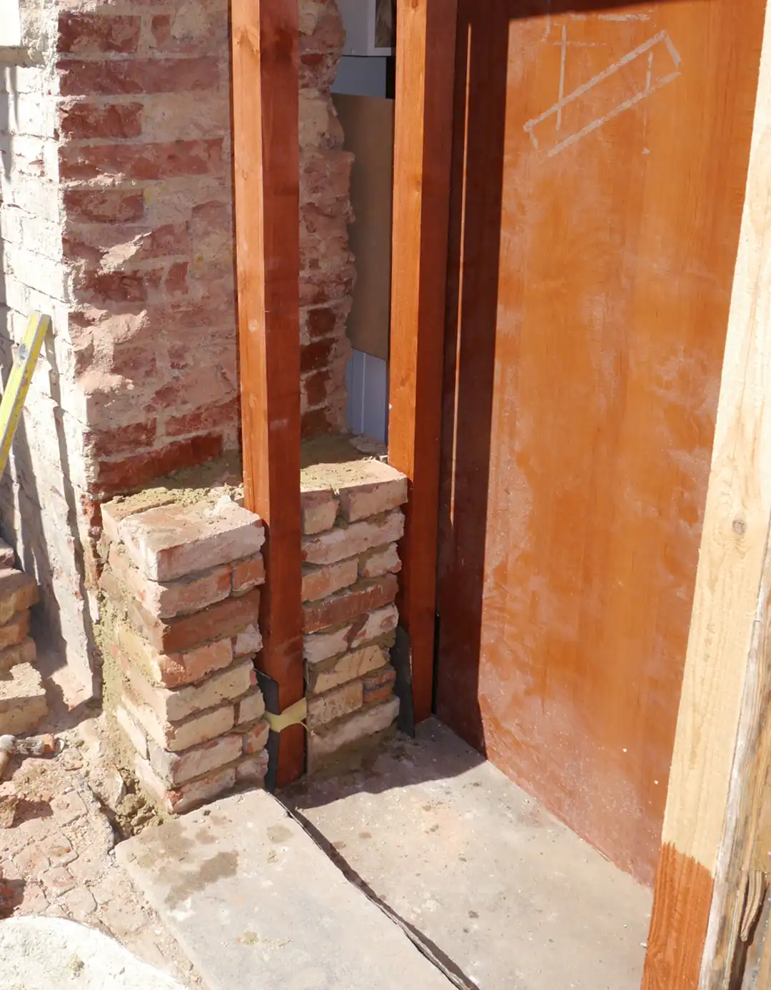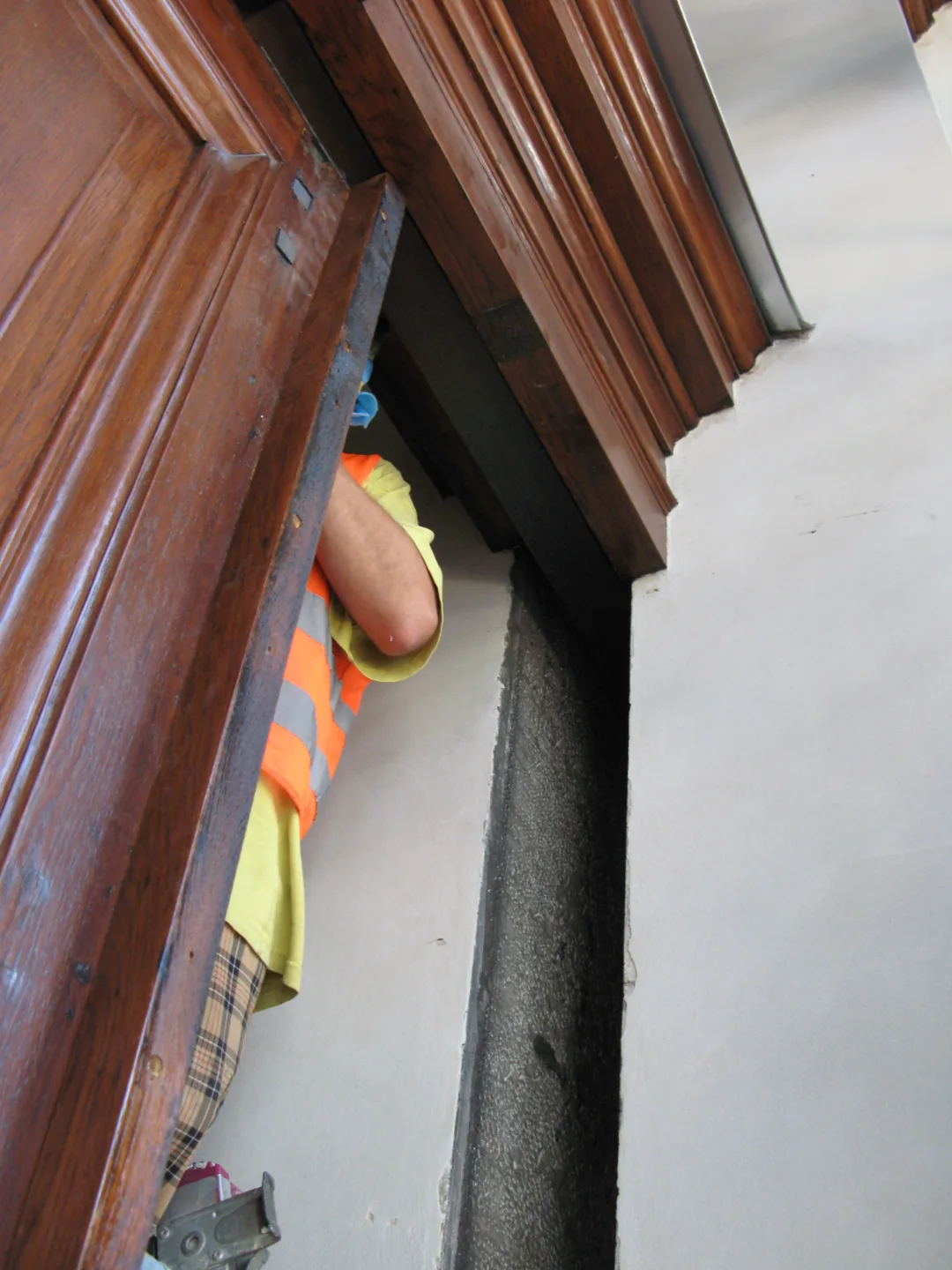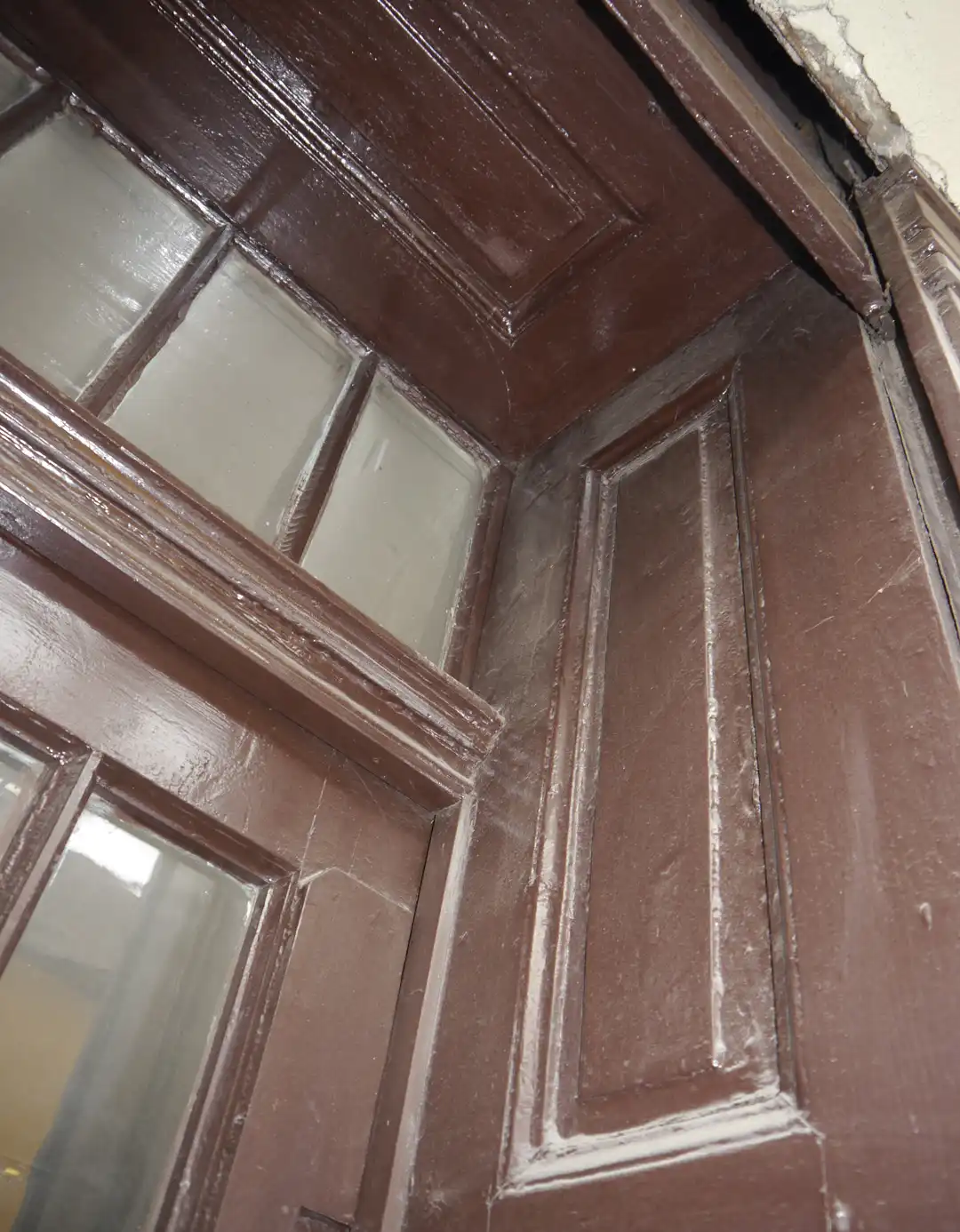 Detail sesazení obkladů, pilastru a nadsvětlíku před opravou
