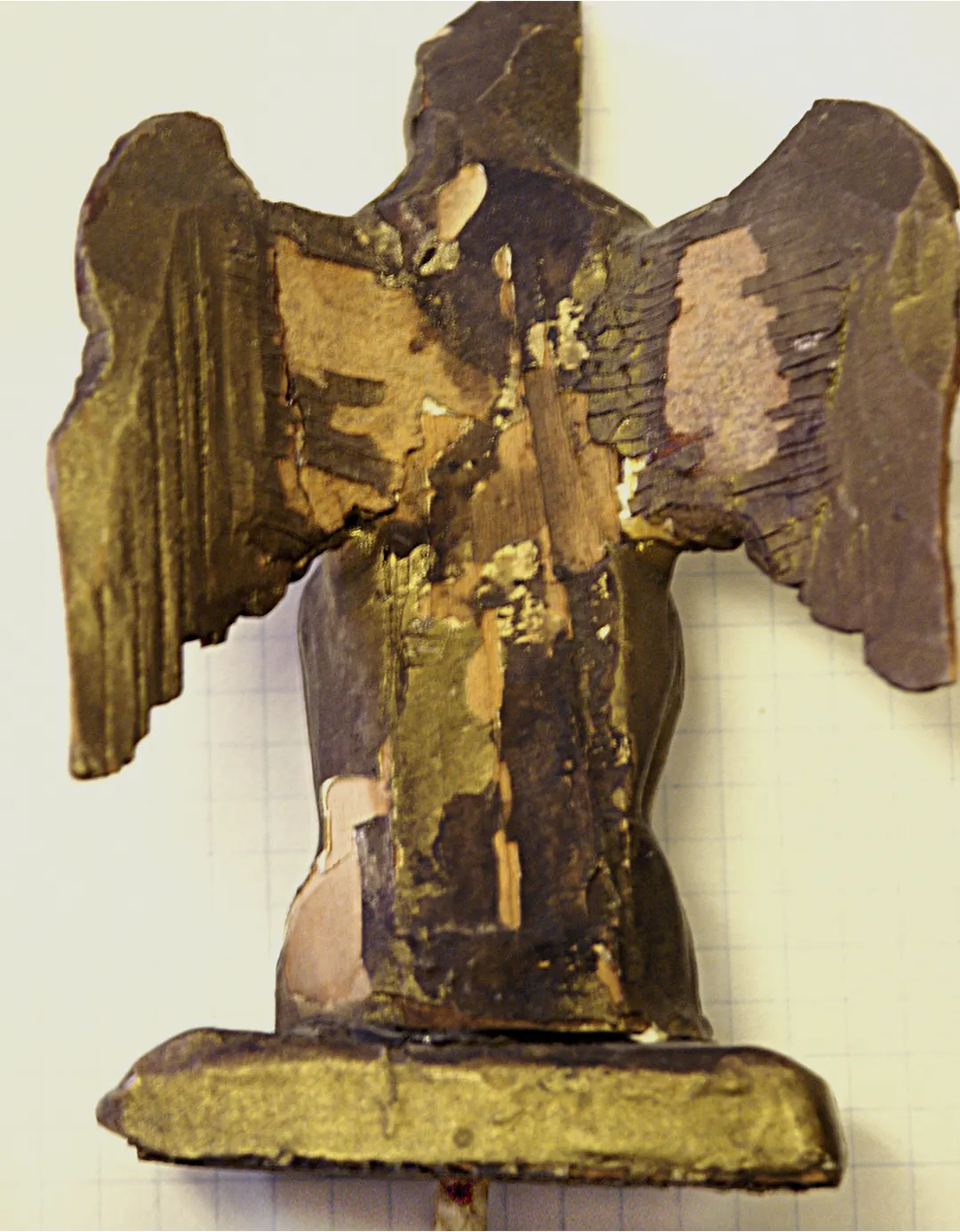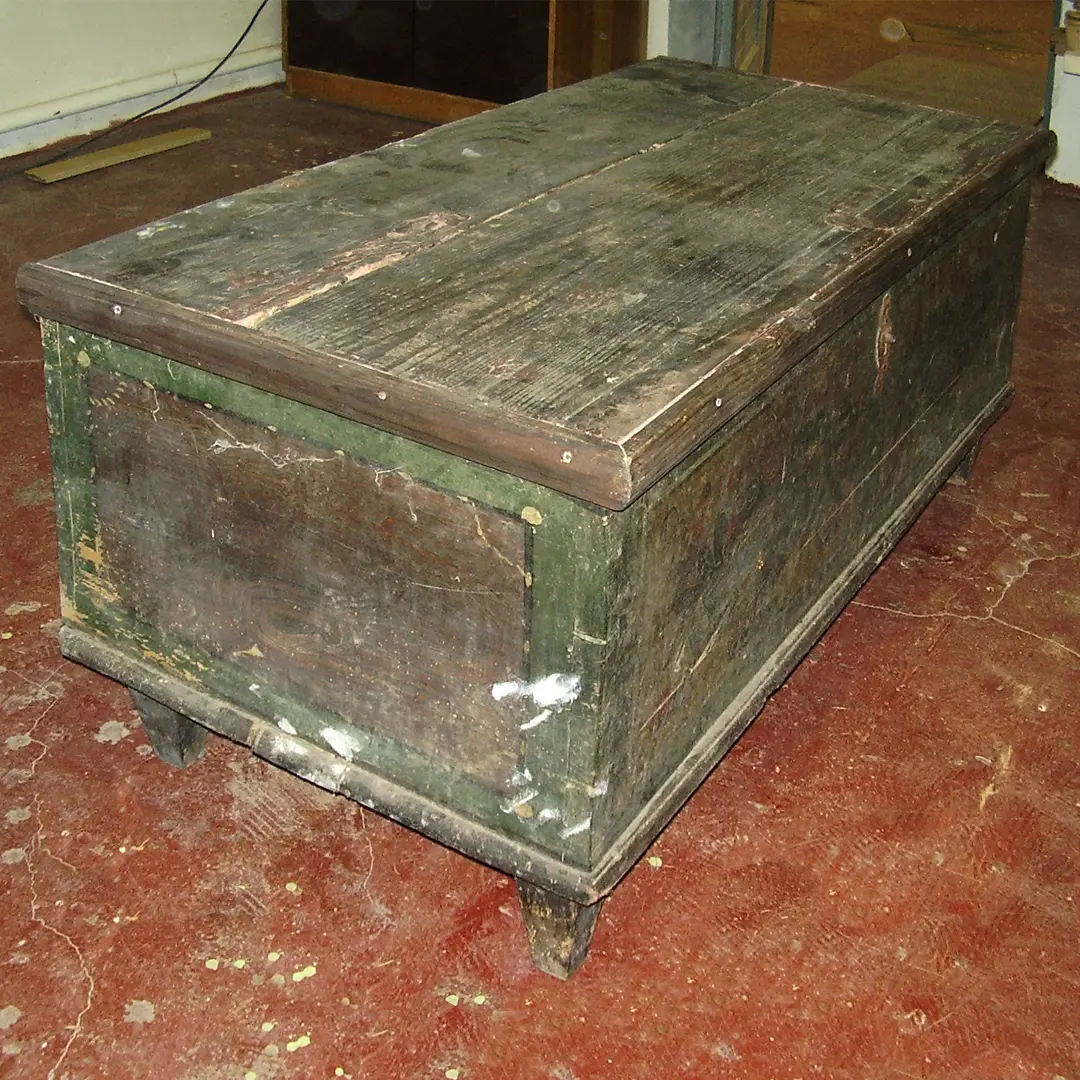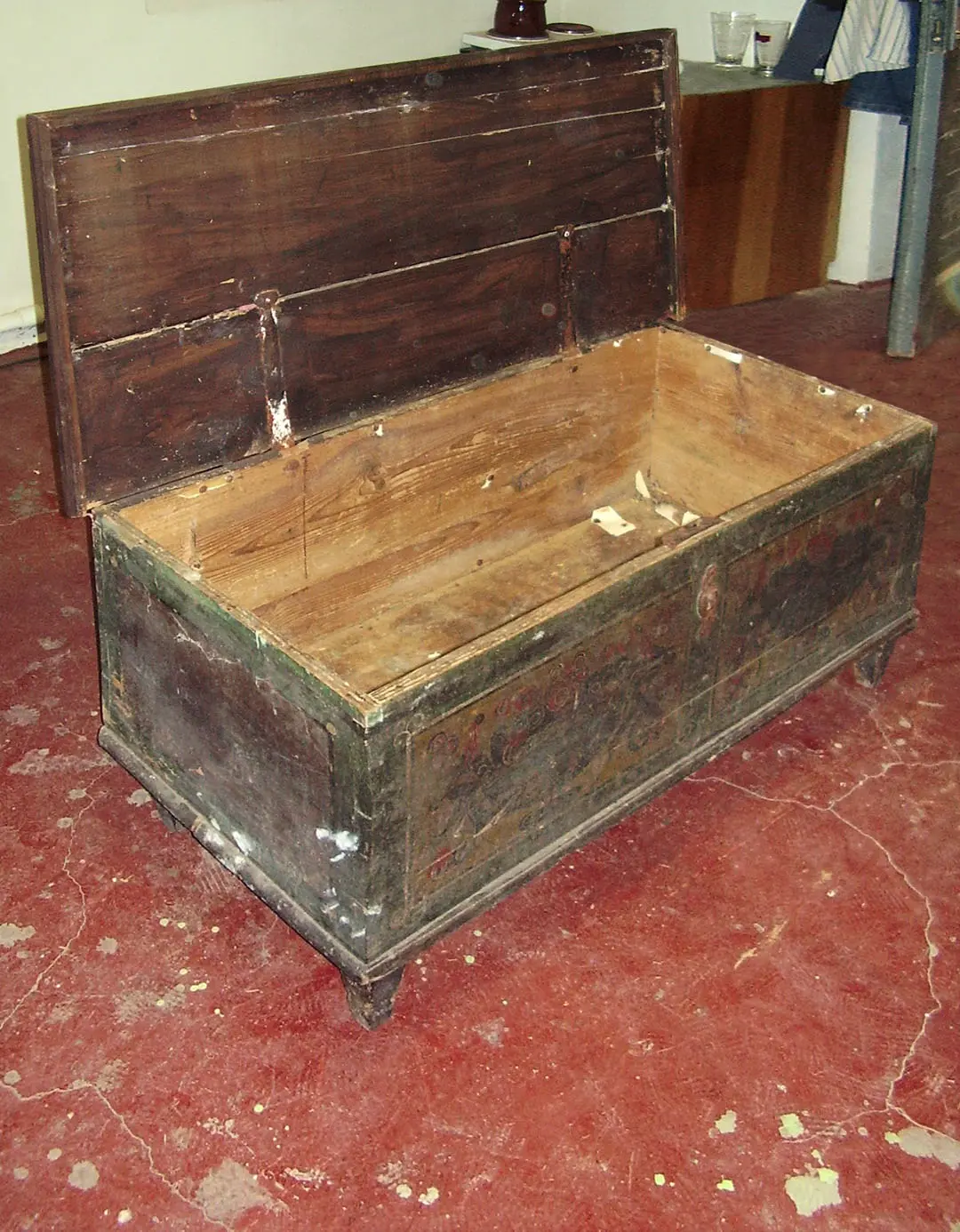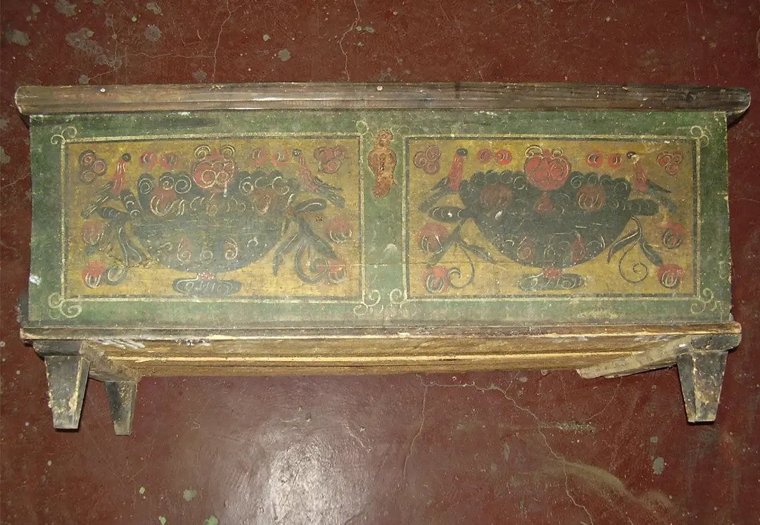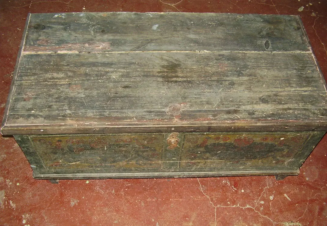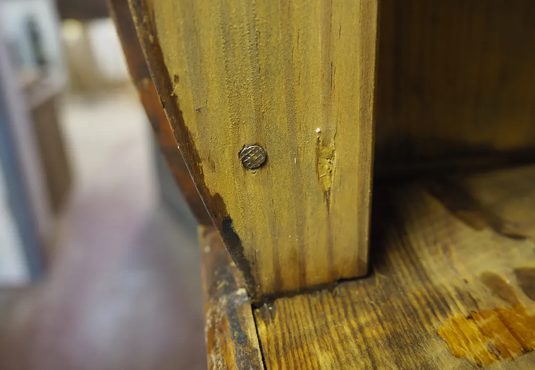 Psací stůl v nálezovém stavu nesl známky dřívějších oprav a repasí.