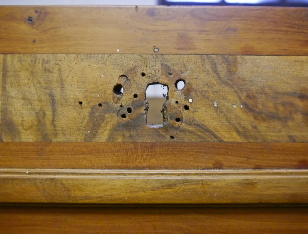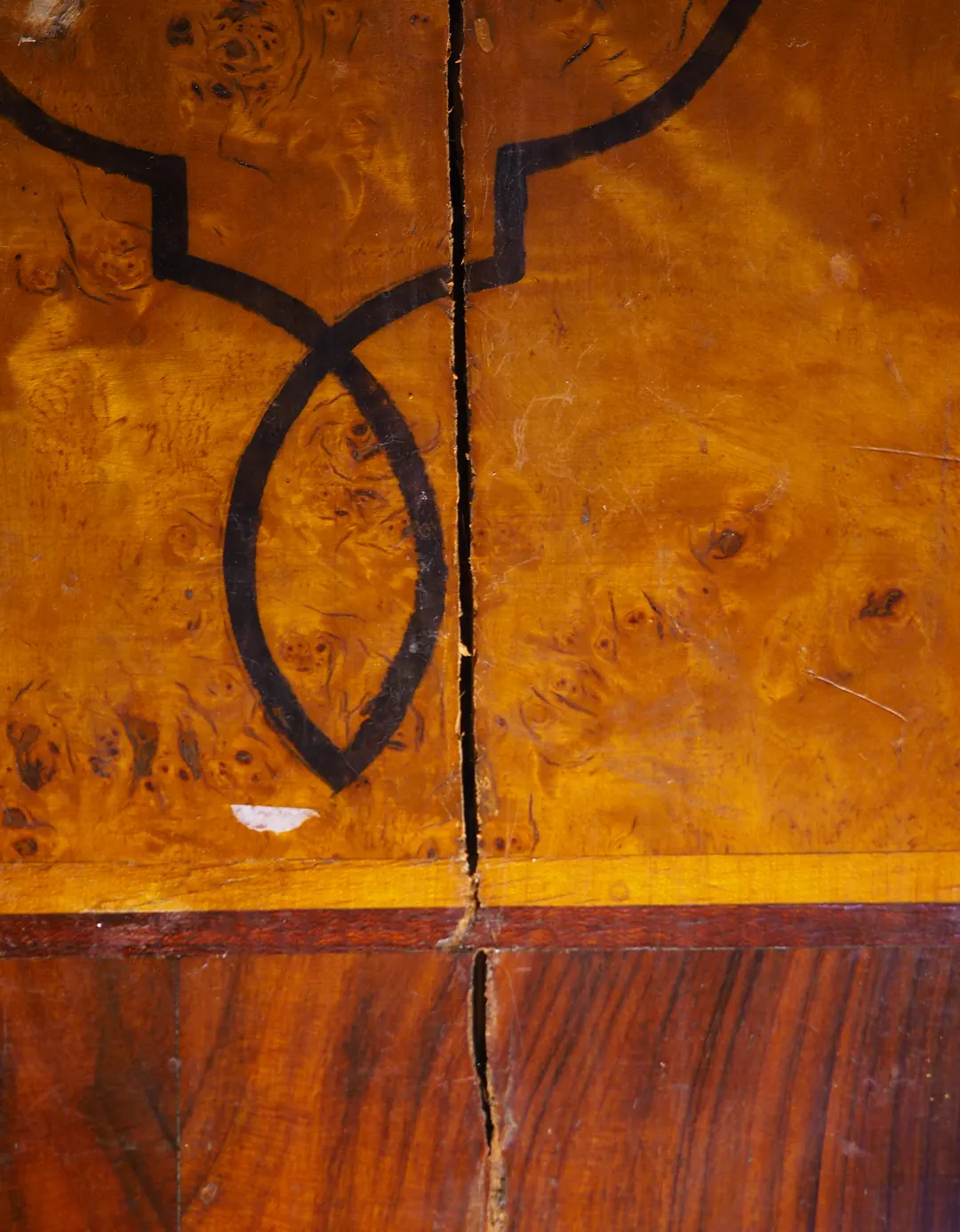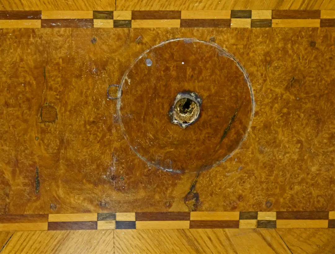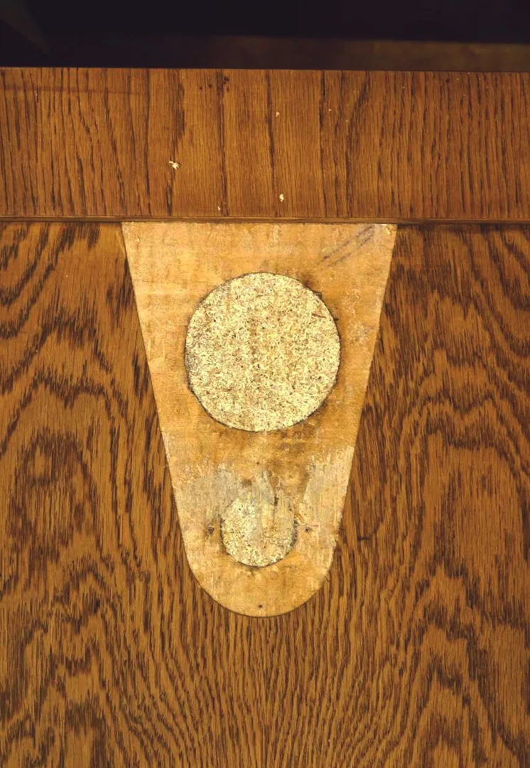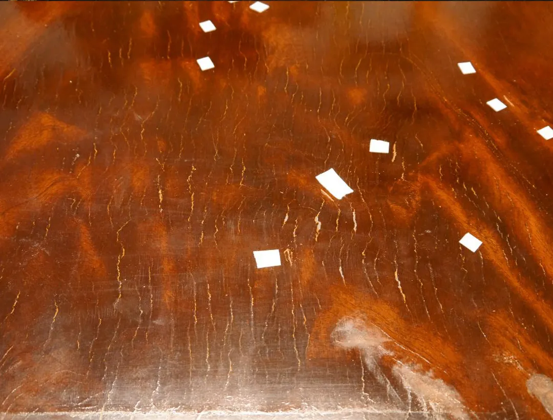 Dřívější oprava ořechové dýhy nevhodným výsazem