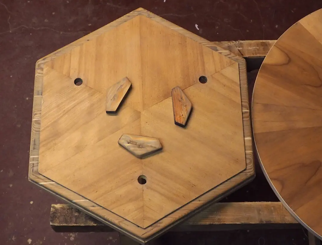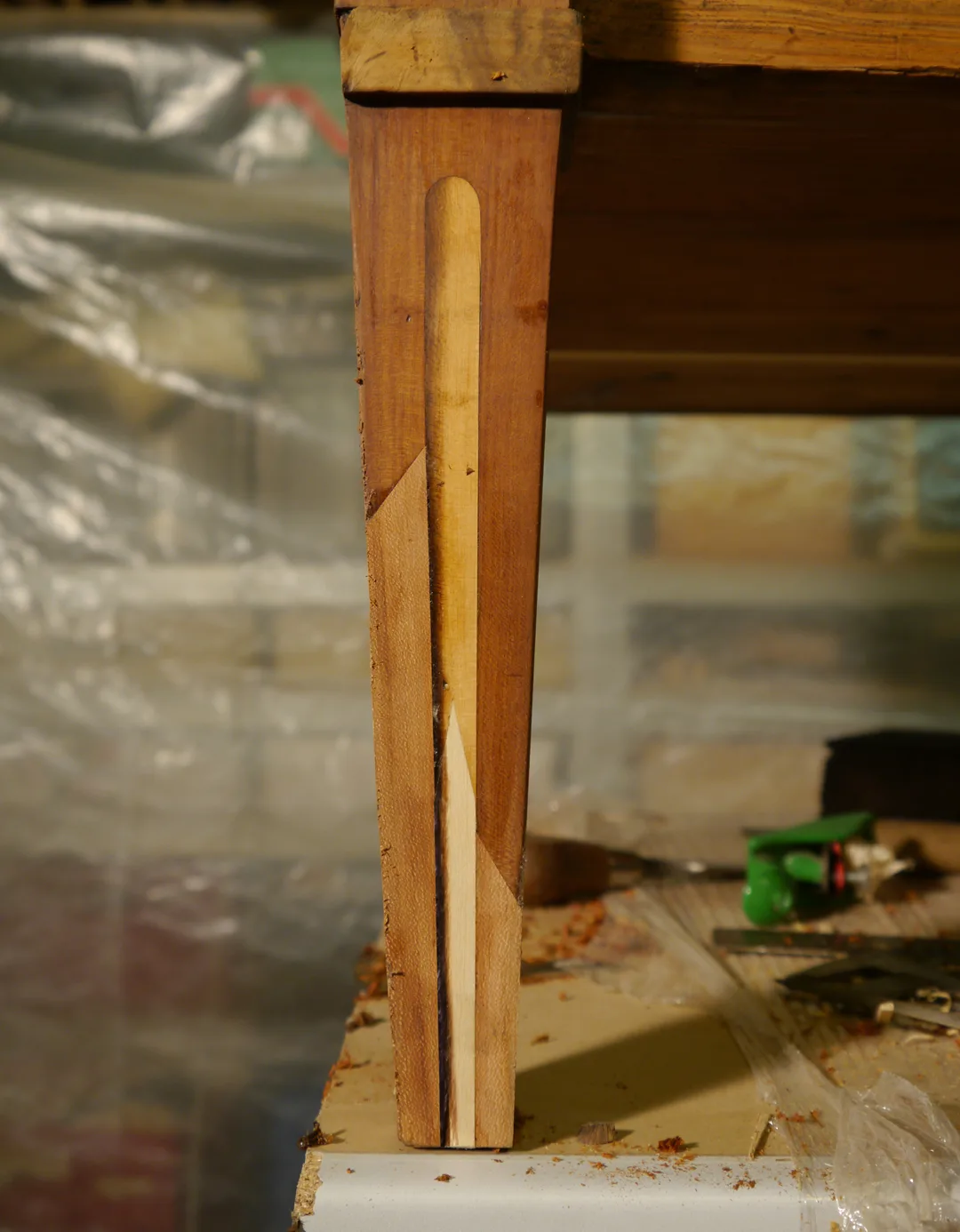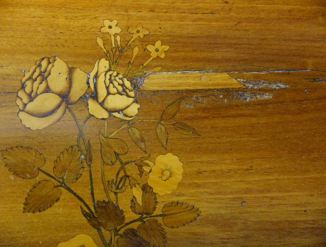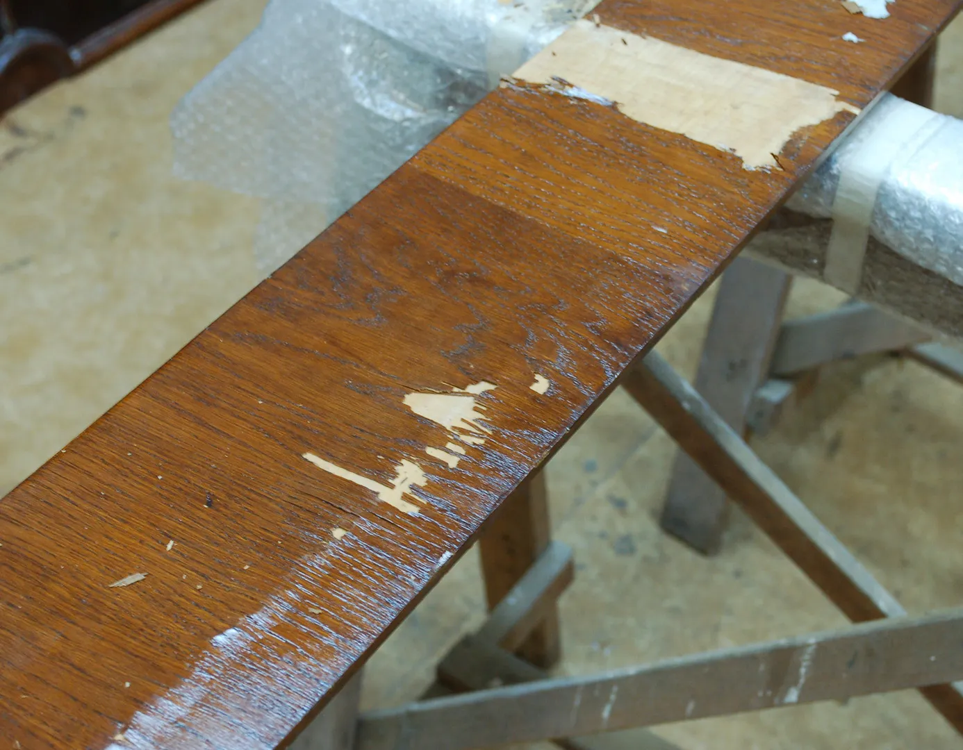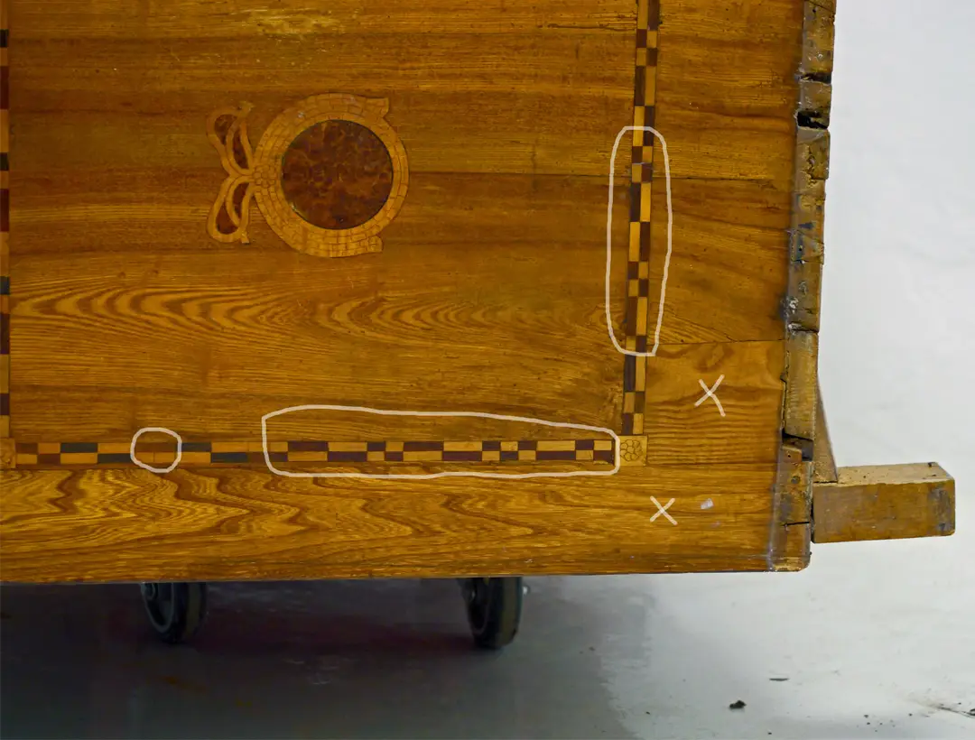 Dřívější oprava ořechové dýhy nevhodným výsazem