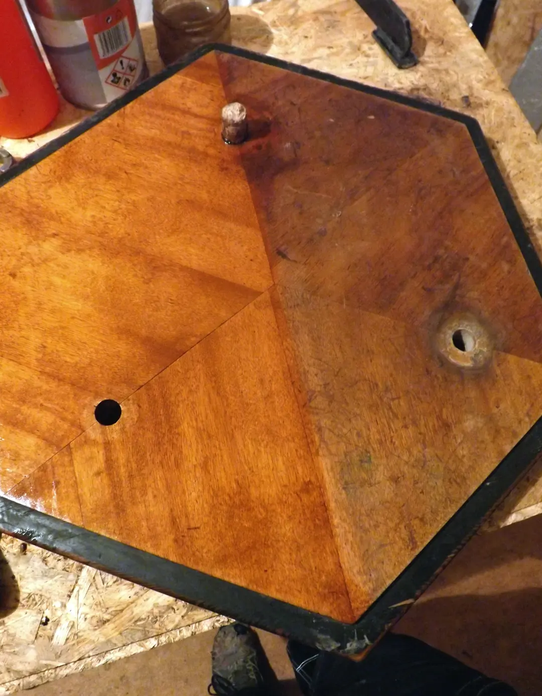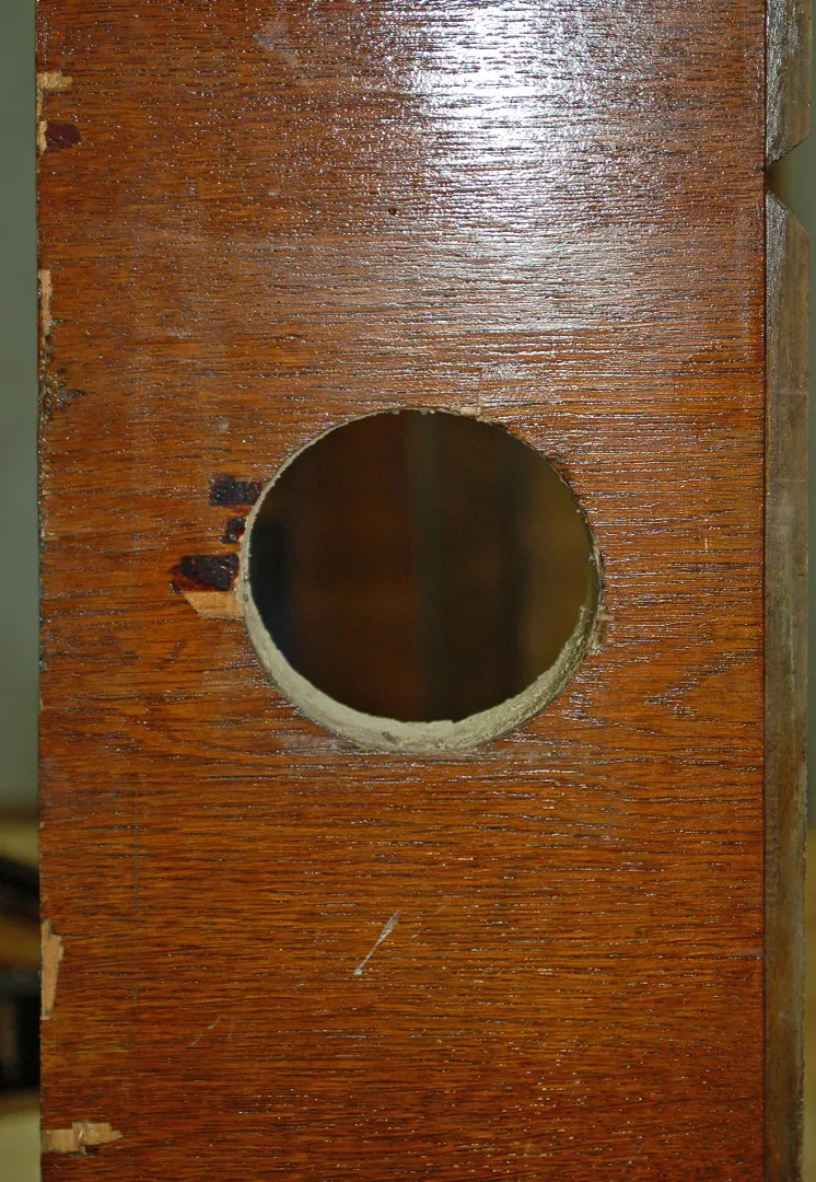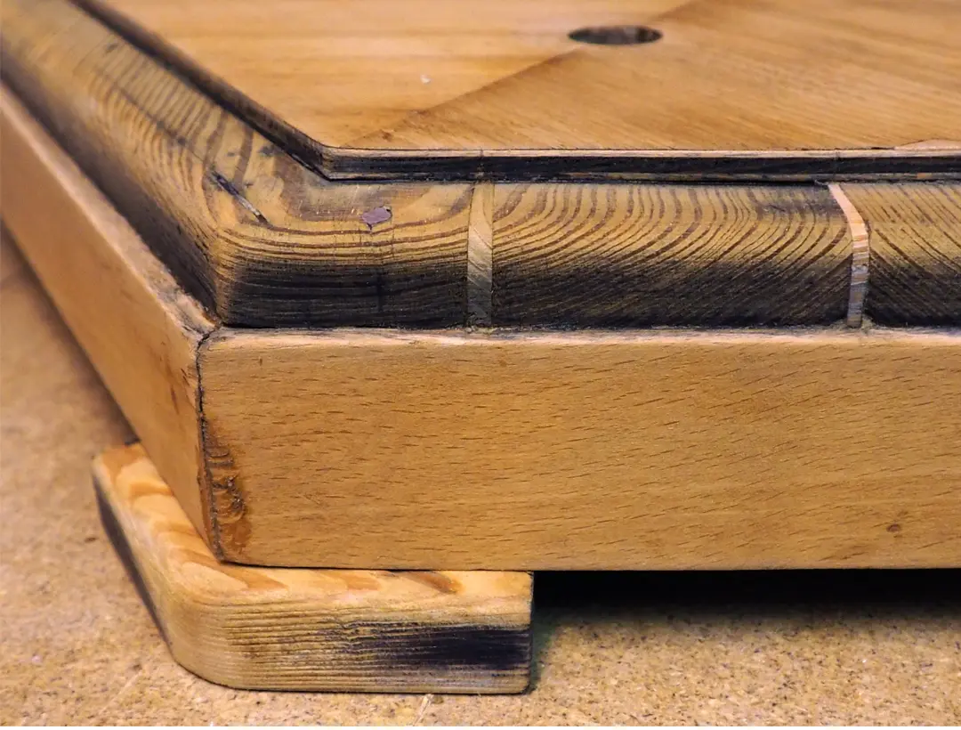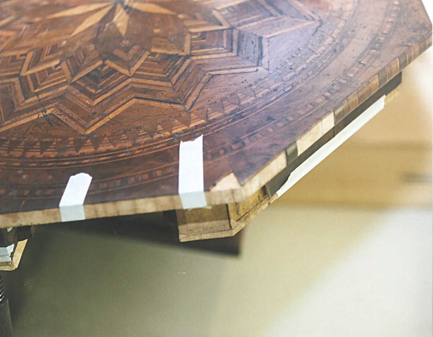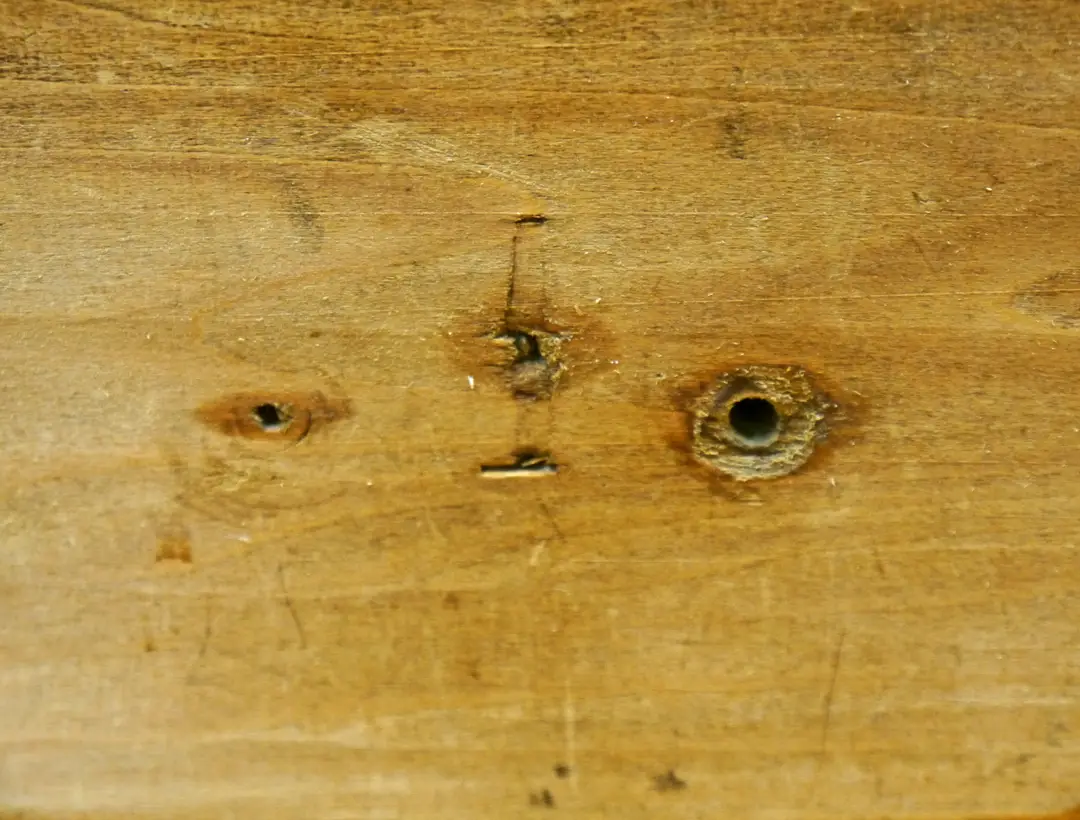 Dřívější oprava ořechové dýhy nevhodným výsazem