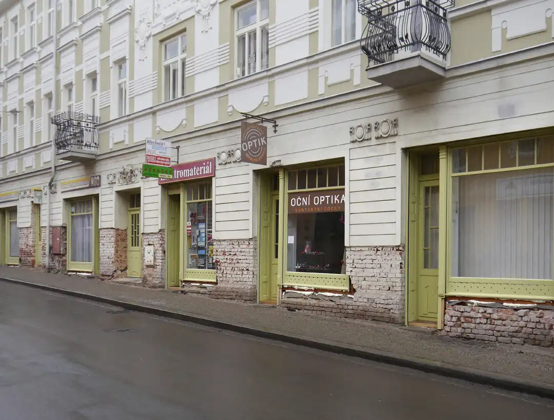 Dílčí části výkladců (deštění, dveřní křídla, větrací lišty, pilastry) byly restaurovány na externím pracovišti. Opravy rámů výloh, zárubně dveří a nadsvětlíky byly opravené na místě při nepřerušeném provozu místních prodejen. Truhlářské opravy zahrnovaly protézování cca 15% borového masivu deštění napadeného hnilobou a doplnění chybějícího deštění výkladce č.1, výroba replik dveří výkladce č. 1 a 2, dále doplnění dekorativních pilastrů, jejichž spodní partie byly uřezány v důsledku dřívějších stavebních úprav podezdívky, výrobu a instalaci zvýšených vstupních soklů za účelem odvětrávání spodních partií deštění, výměnu okapnic výkladců. Zvýšené působení vlhkosti na spodní partie výkladců umožnily historické stavební a zemní úpravy pochozích ploch před domem. Dřívější zvýšení vozovky a chodníku pohltilo cca 40cm původní výšky spodní hrany výkladců od země. Dřívější vydláždění a vybetonování vodorovných ploch pod výkladci zintenzivnilo expozici odstřikující vodou. Povrchy v několika vrstvách emailů o různé barevnosti (sondáží i následnou stratigrafií prokázány vrstvy hnědé, modré a světle zelené) byly zcela nefunkční, místy úplně chyběly. Autentickou barvenost potvrdil i nález jedné menší výplně, která již v minulosti zapadla za deštění a byla v průběhu dřívějších zásahů nahrazena. Tuto výplň jsme ve snaze o zachování výpovědní hodnoty originálu zadokumentovali a osadili zpět na její místo při zachování všech původních vrstev nátěrů pod jednotící vrstvou nového emailu. Původní skla byla zachována, dřívě doplněná floatová skla byla demontována a nahrazena imitací taženého skla a fixována sklenářským tmelem.
