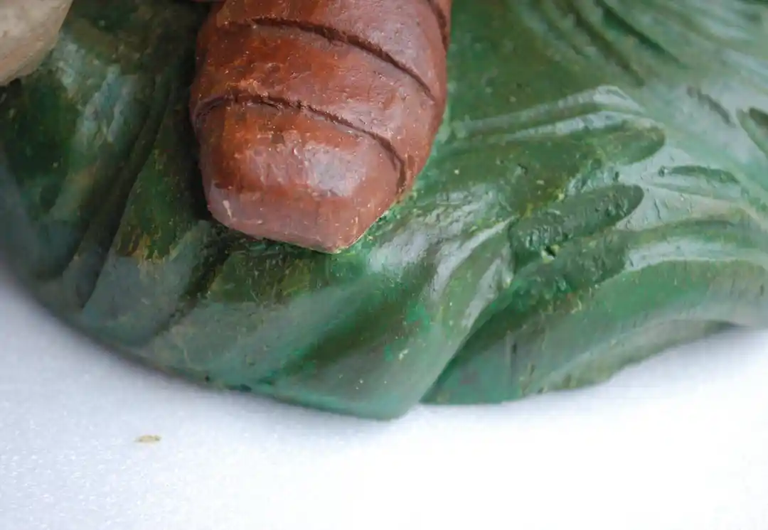 Stejné místo po provedení retuší výsazů a finálním ošetřením lakem