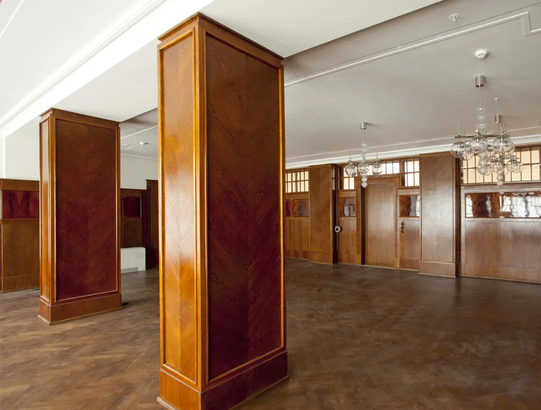 Velmi zajímavou zkušeností byla účast v týmu řemeslníků na opravách a restaurování dobového dřevěného obložení jednacího sálu ve dnešním komplexu budov Pražského Florentina. Jednací místnost (pův. „hovorna“) je součástí 3. podlaží budovy Na poříčí 30, Praha 1 (bývalá budova Rudého Práva). Jedná se o reprezentativní prostor s dochovaným původním vybavením, období vzniku datováno přelomem 20. a 30. let 20. stol. přísluší k rondokubistickému stylu (autorství nejednoznačné Josef Blecha nebo Gustav Fantl, r. 1929/32). Předmětem restaurování bylo kompletní sejmutí, truhlářské opravy a repase a opětovná montáž dřevěného obložení stěn, světlíkových oken a prosklených předokenních zástěn. Sál proběhl několika dřívějšími rekonstrukcemi. Veškeré dílce nesly známky dřívějších a ne vždy šetrných oprav (dosazování neautentických materiálů, nešetrné výbrusy povrchů a enormní ztenčení originálních dýh, poškození konstrukčních nosičů panelů, nešetrně maskované zásahy a repase v důsledku dřívějších elektroinstalací a instalací radiátorů). Náročné bylo nejen dosazování větších ploch materiálem navazujícím na originál, ale rovněž nekonečné podlepování stovek trhlin, puchýřů a odlupujících se dýh. Samotná instalace opravených panelů vyžadovala maximální přesnost. Panely byly již naformátované a bylo nezbytné je usadit zpět od původních pozic, přestože původní rozměry místnosti se nepatrně změnily důsledkem omítání a zarovnání stěn během rekonstrukce. Také samotné povrchové úpravy šelakem a leštěným lakem byly velmi choulostivé a vyžadovaly enormní péči při manipulaci během instalace.