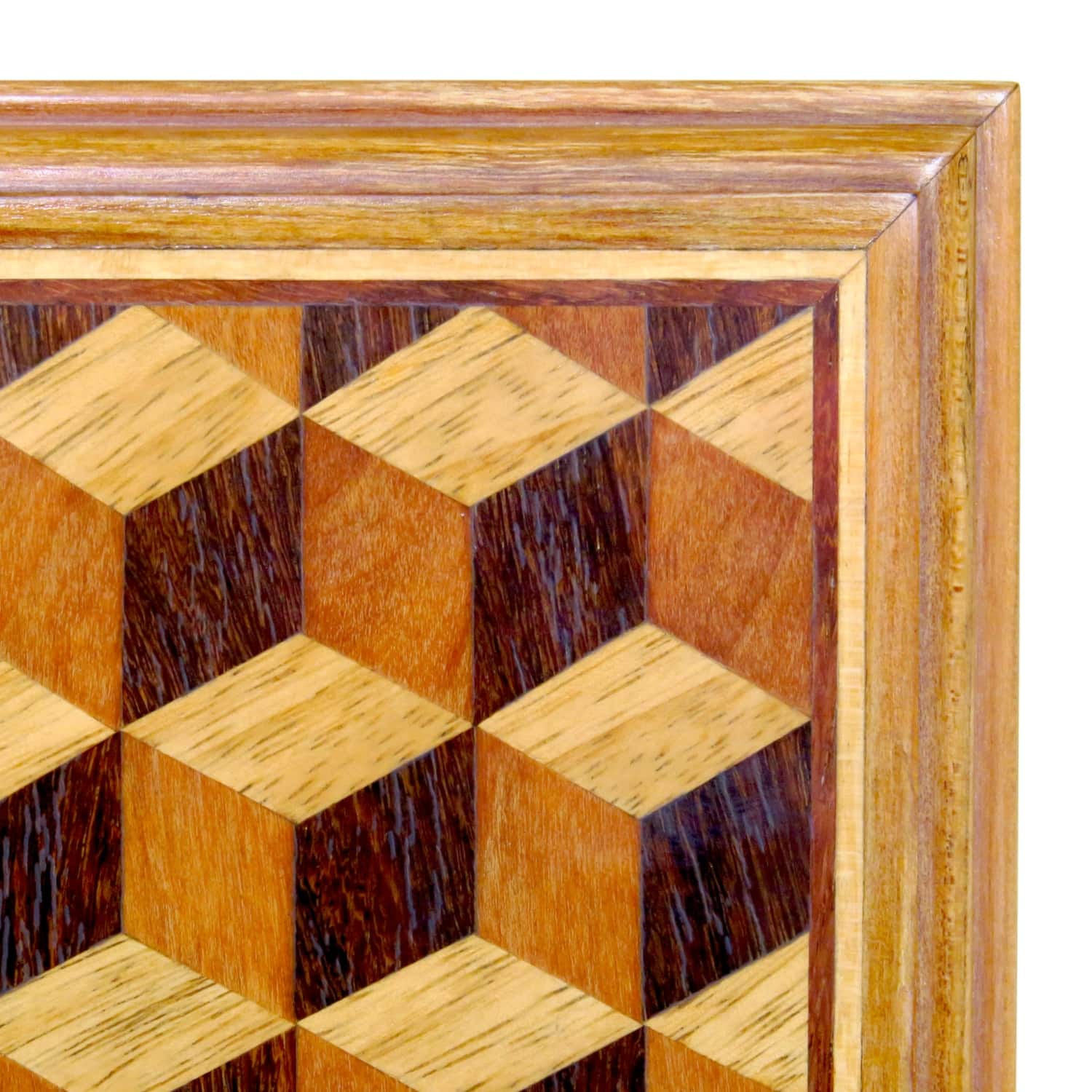 Je zavedenou klasikou v tradičním řemeslném provedení s intarzovaným motivem kostek na víku, ručně vyráběnými panty a bohatým profilováním hran, boků a nohou. Šperkovnice má jeden centrální úložným prostorem v uzamykatelném provedení. Živost barev a prokreslenost dřevu dodává leštění přírodní šelakovou politurou v odstínu světlého citrónu.